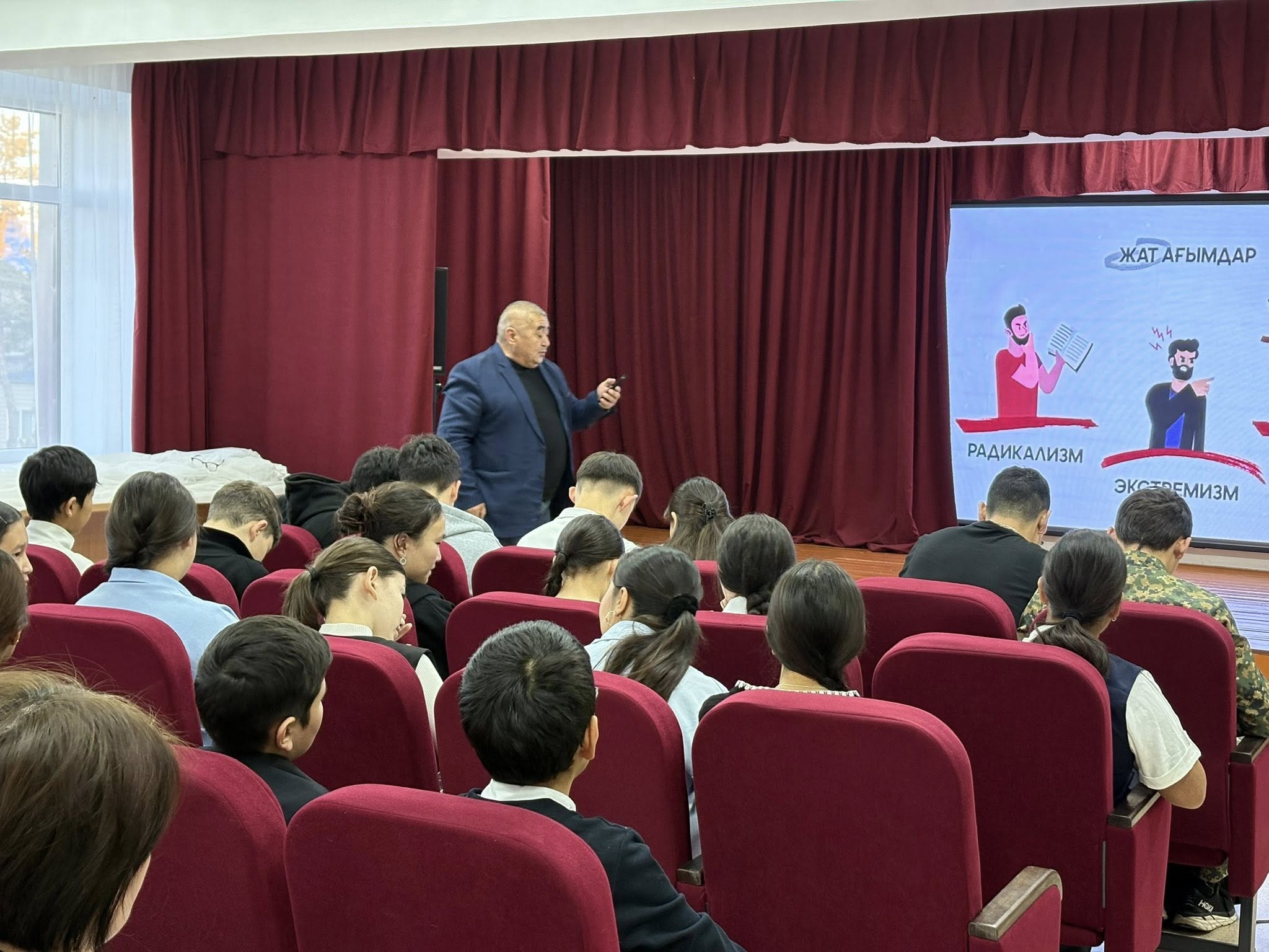 2025 жылдың 13 қарашасы 8-11 сыныптар арасында «Терроризм мен діни экстремизмнің алдын алу» тақырыбында ақпараттық сағат өткізілді.
