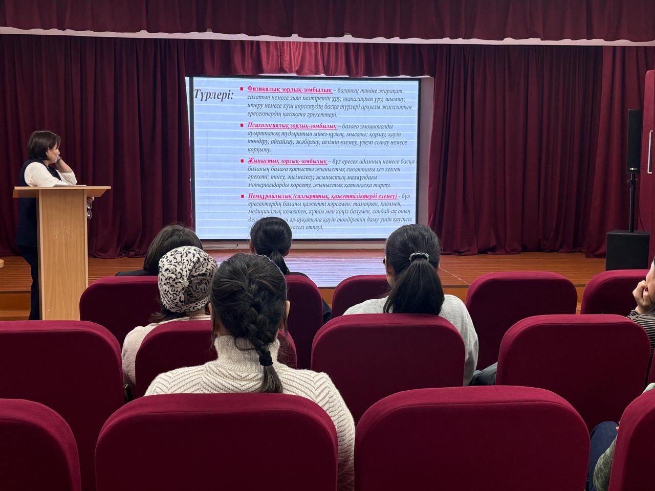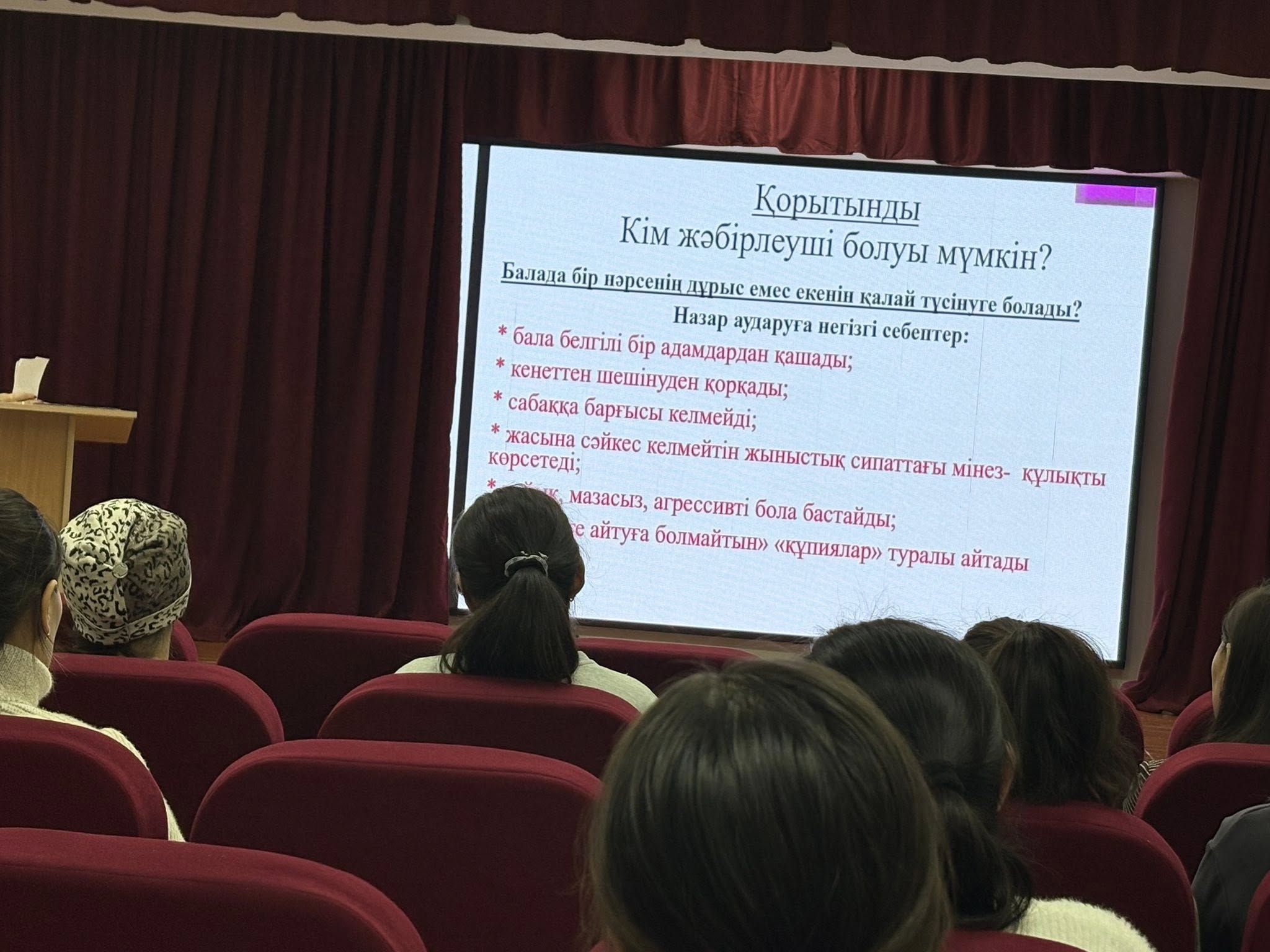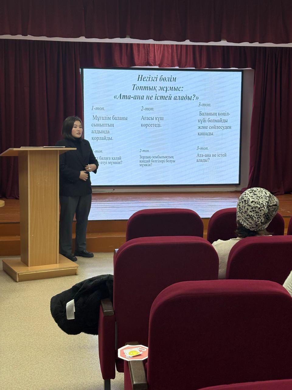 Мектебімізде 1-4 СЫНЫП ОҚУШЫЛАРЫНЫҢ АТА-АНАСЫНА АРНАЛҒАН “Жеке қауіпсіздік және баланы зорлық-зомбылықтан қорғау” тақырыбында ата-аналардың қатысуымен сабақ ұйымдастырылды.