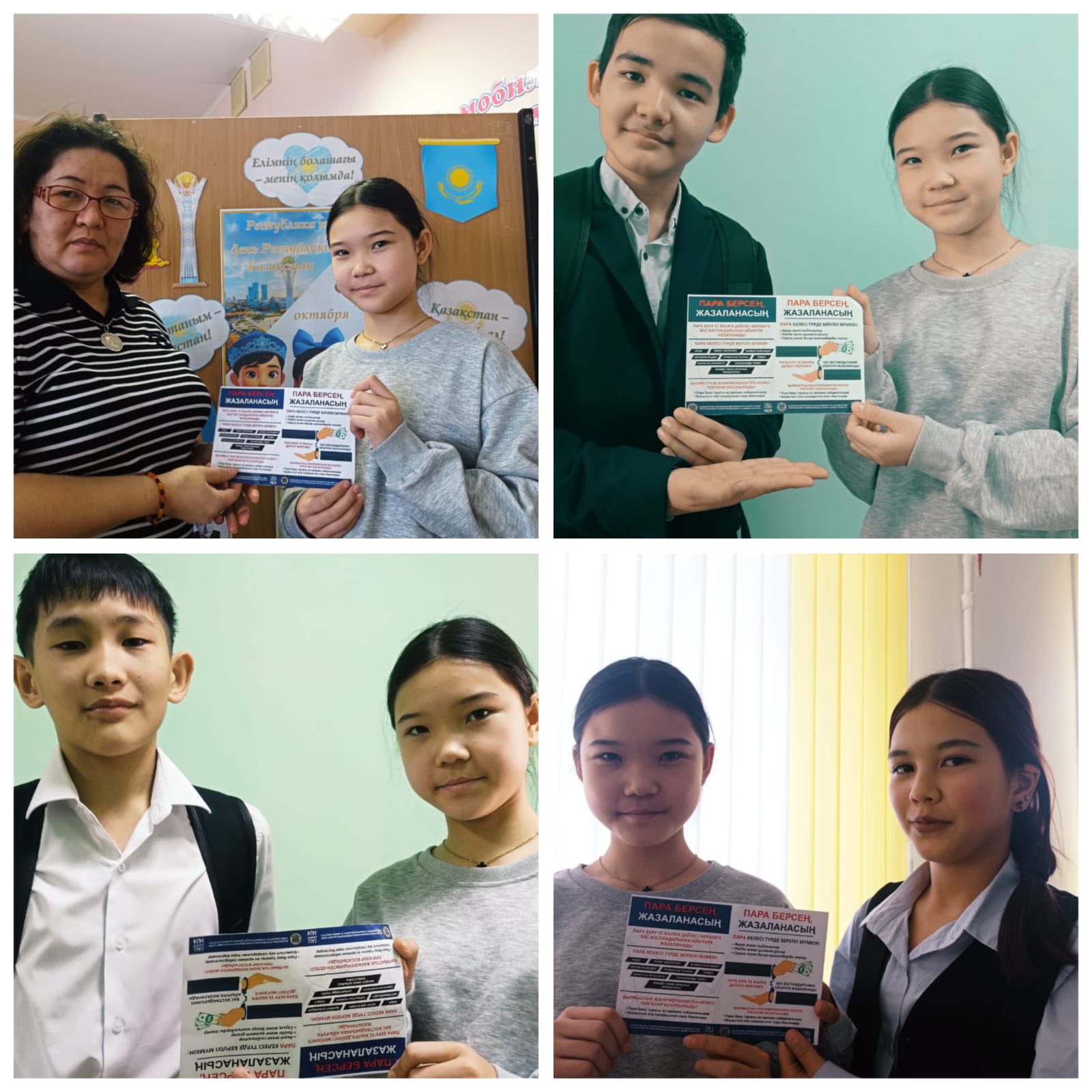Мақсаты: оқушыларды сыбайлас жемқорлыққа қарсы күреске, сыбайлас жемқорлық көріністерінің алдын алу мақсатында әлеуметтік жарнаманы әзірлеуге және пайдалануға тарту.