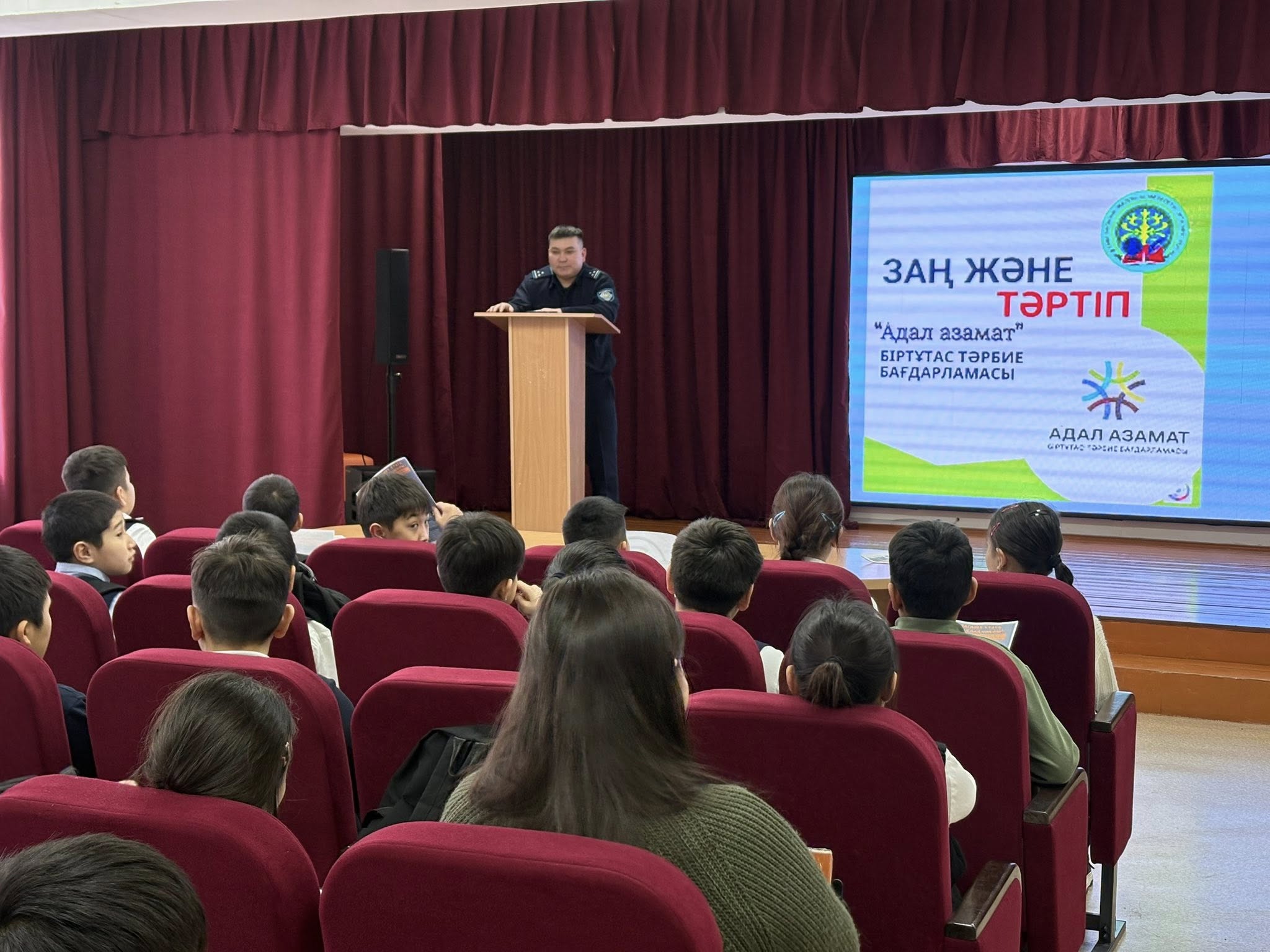 Сабақтың мақсаты – оқушылардың құқықтық сауаттылығын арттыру, заңға құрметпен қарауды қалыптастыру және қоғамдағы қауіпсіз мінез-құлық мәдениетін дамыту.